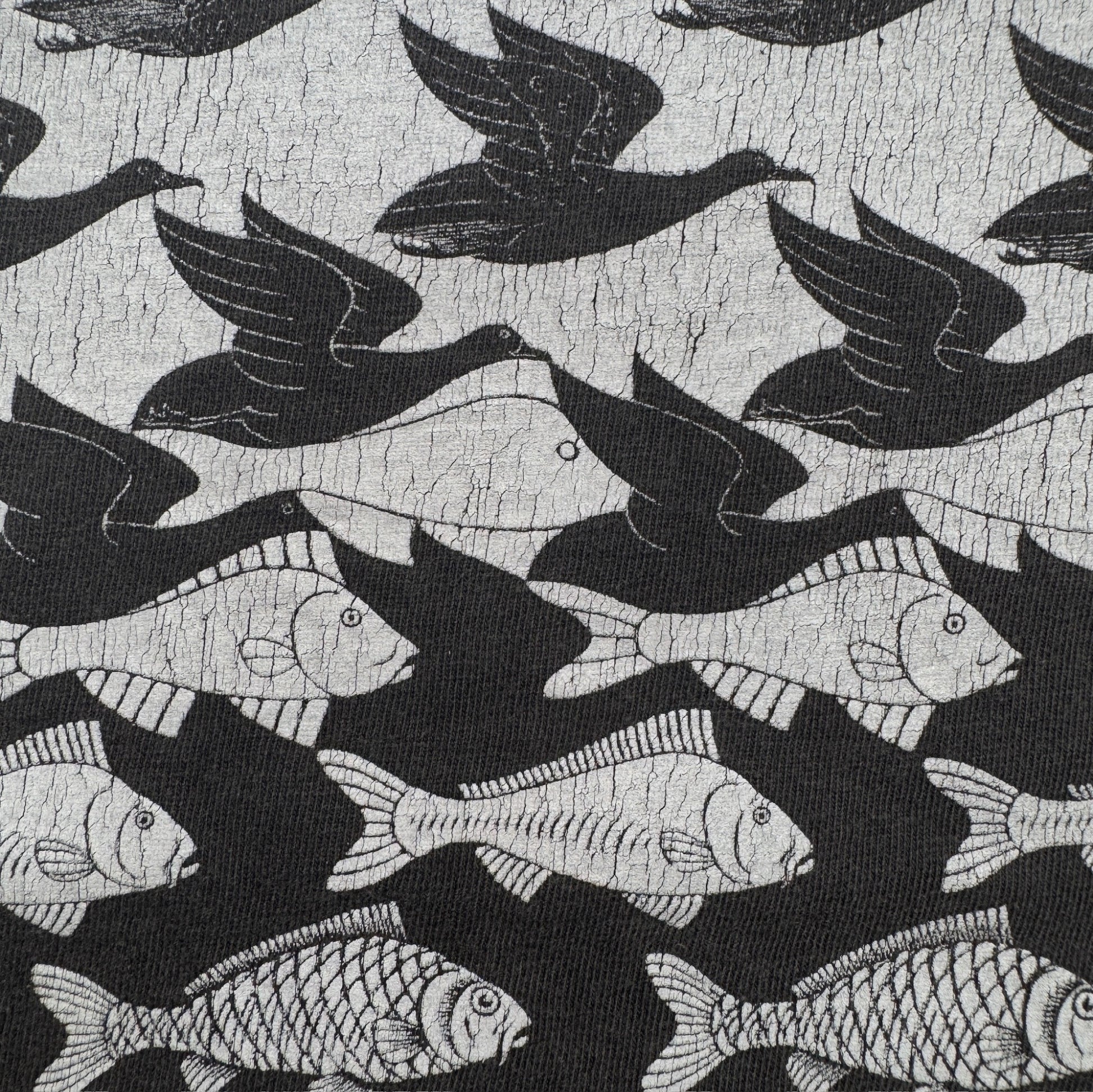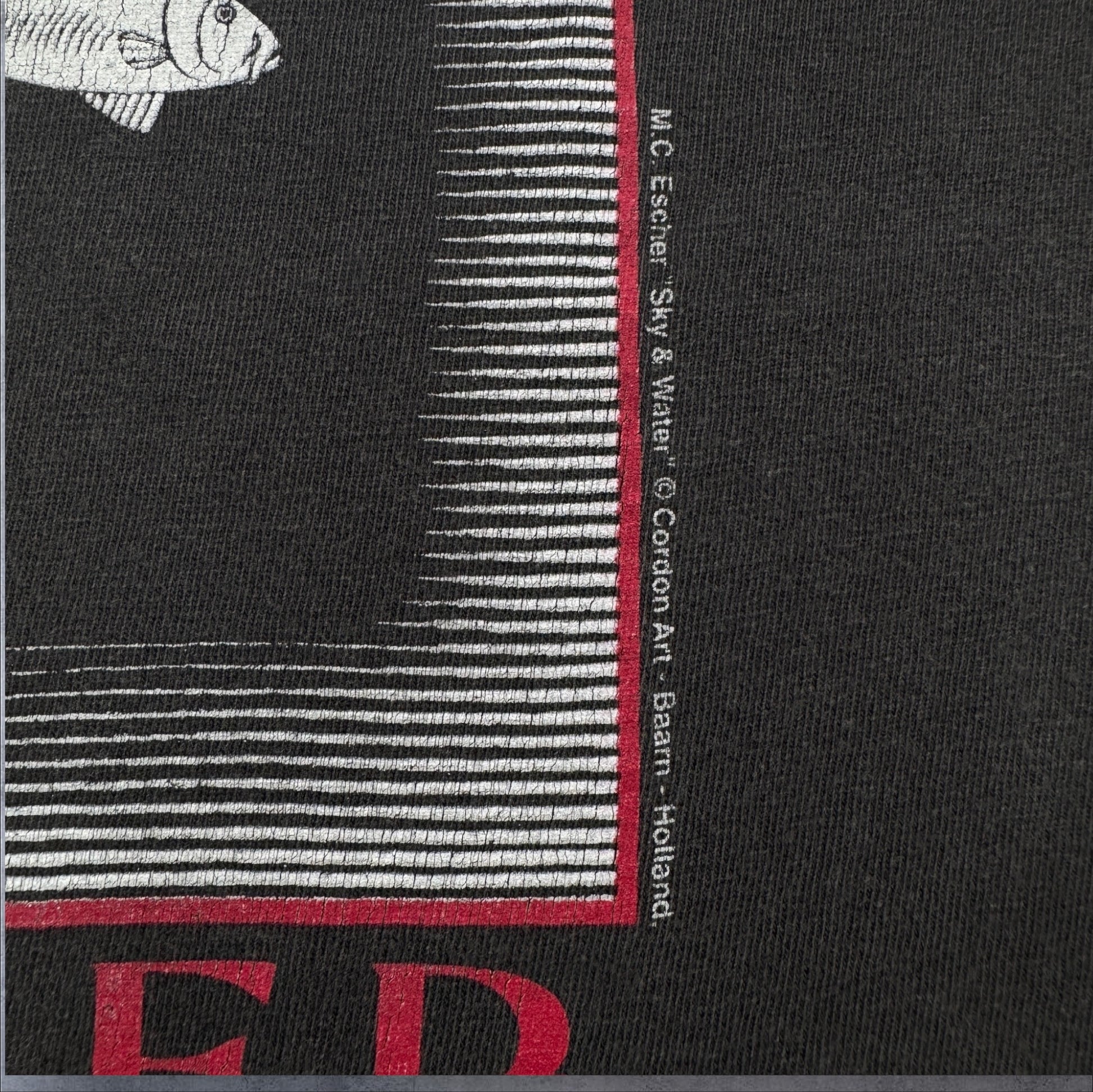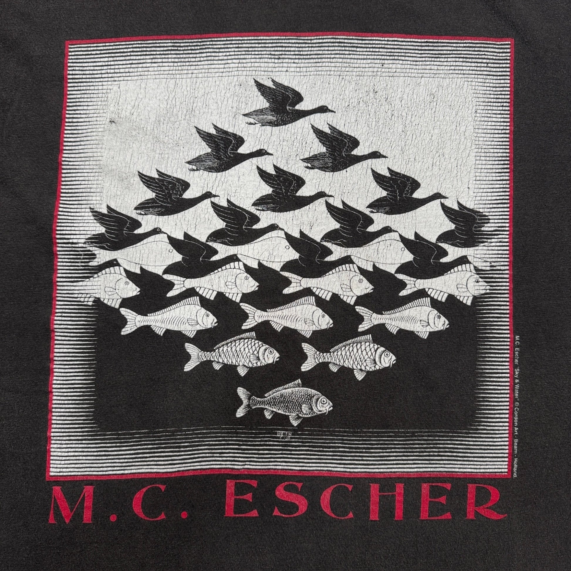 90s M.C. Escher エッシャー Sky & Water 騙し絵 アートT Hanes 黒 L a-t-2505-021
