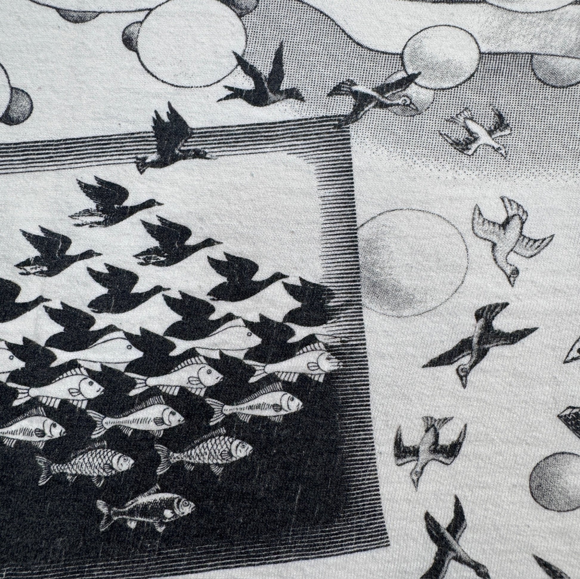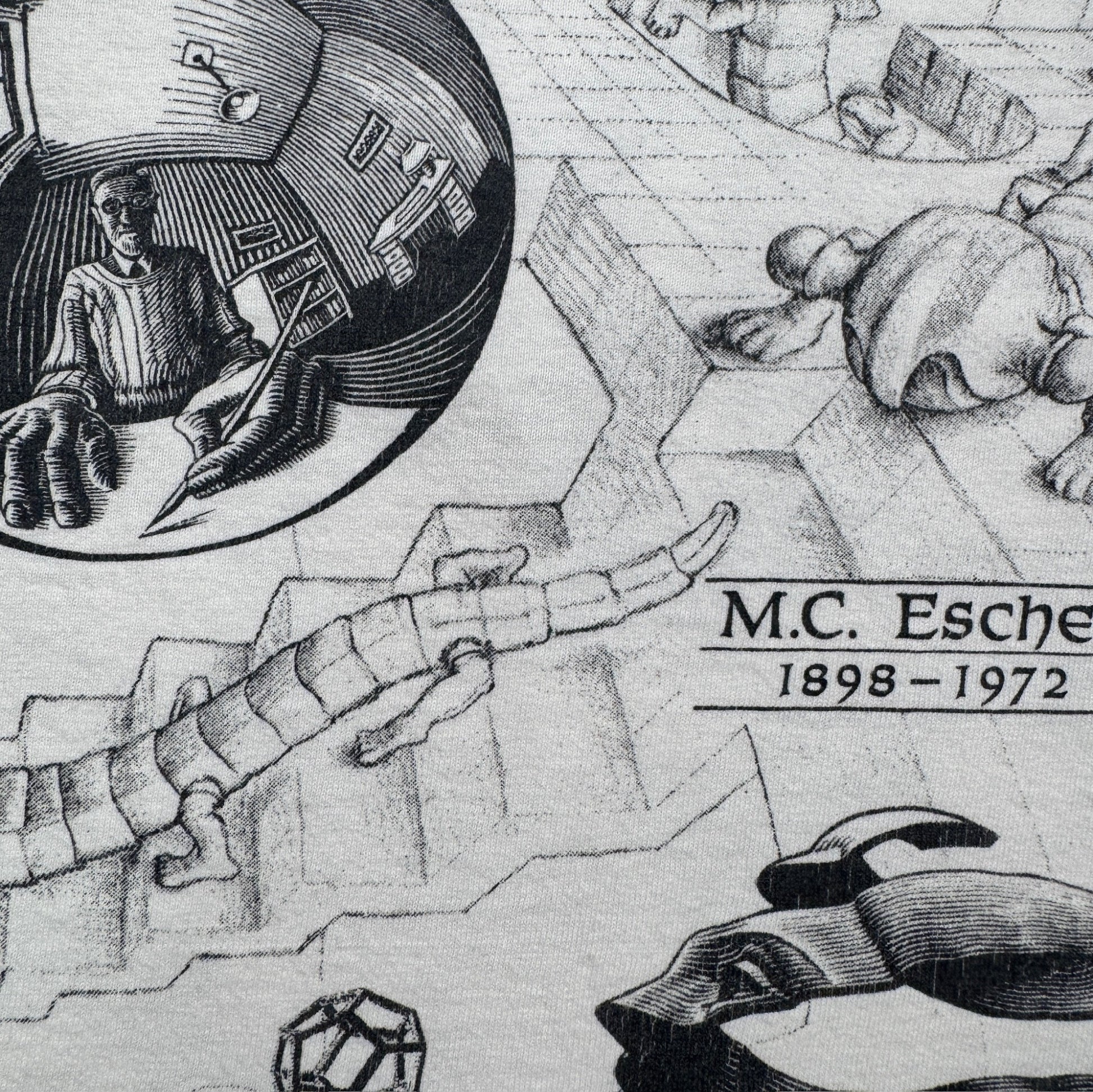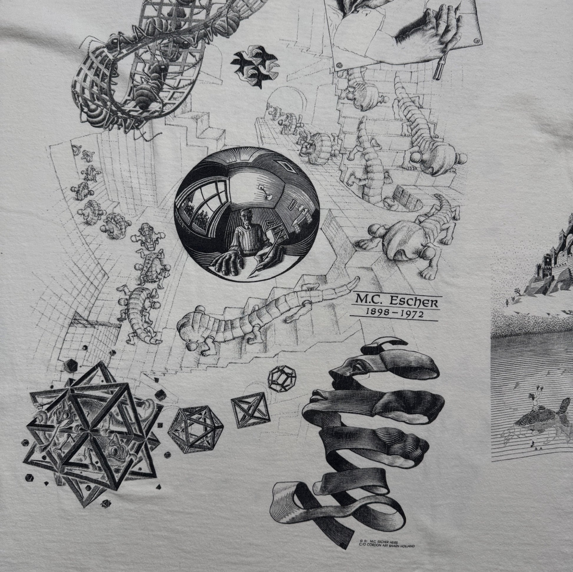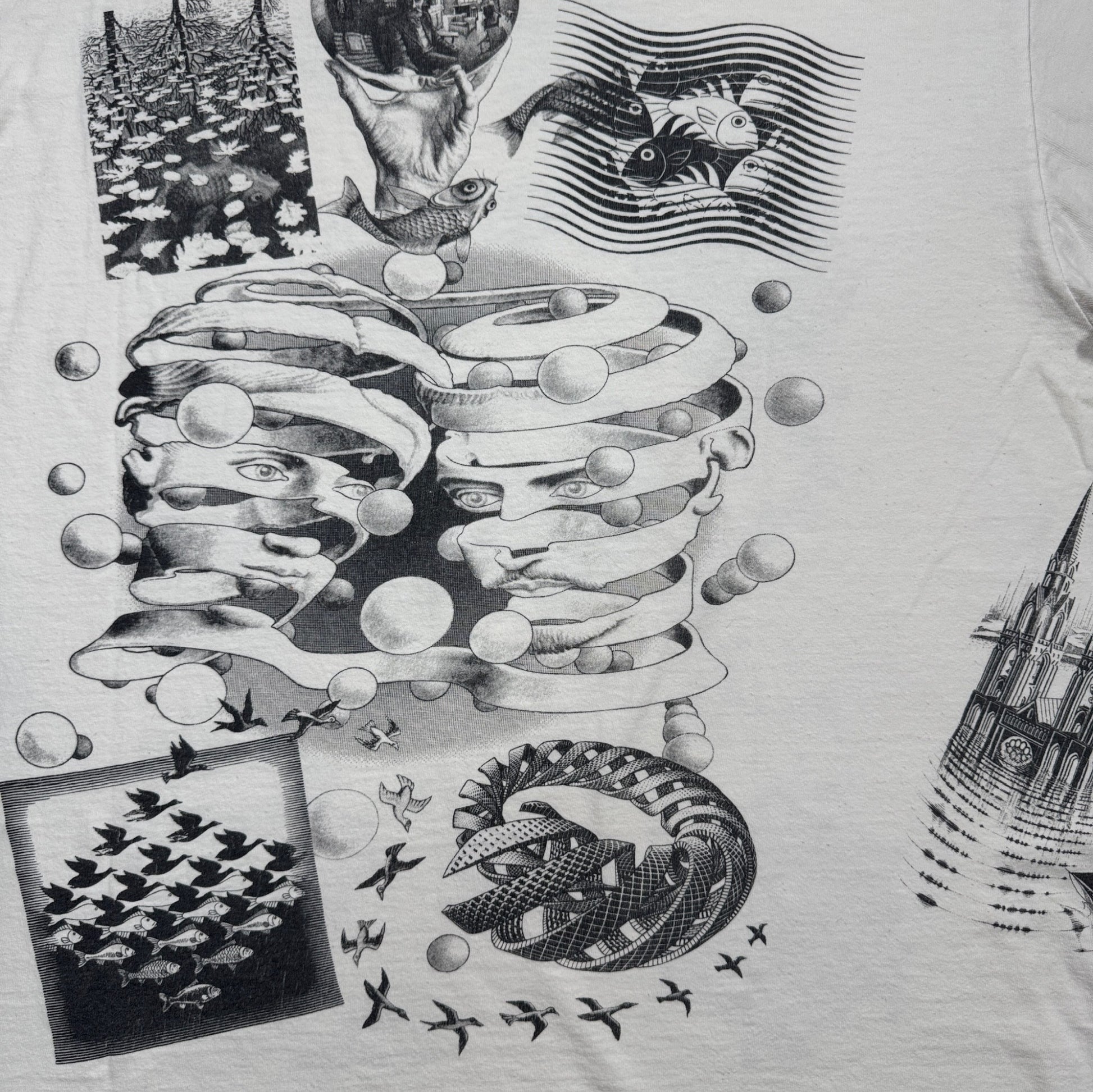 90s M.C. Escher エッシャー マルチプリント 両面 騙し絵 アートT AOP SOFTEE USA製 白 XL a-t-2505-022
