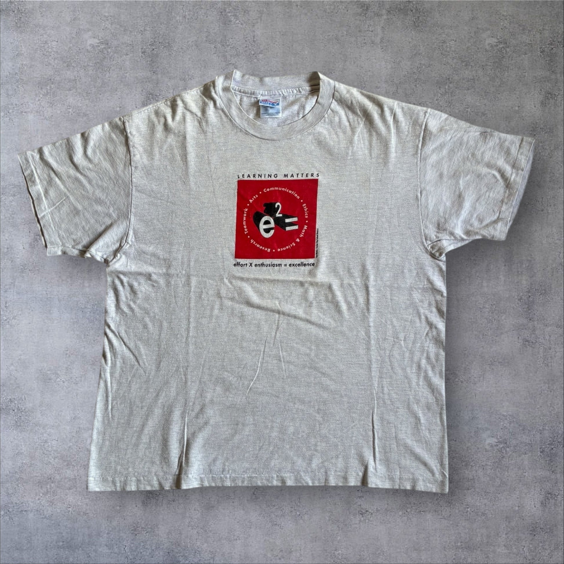 90s e2= 教育系プロモT アインシュタイン Hanes XL グレー a-u-2505-008