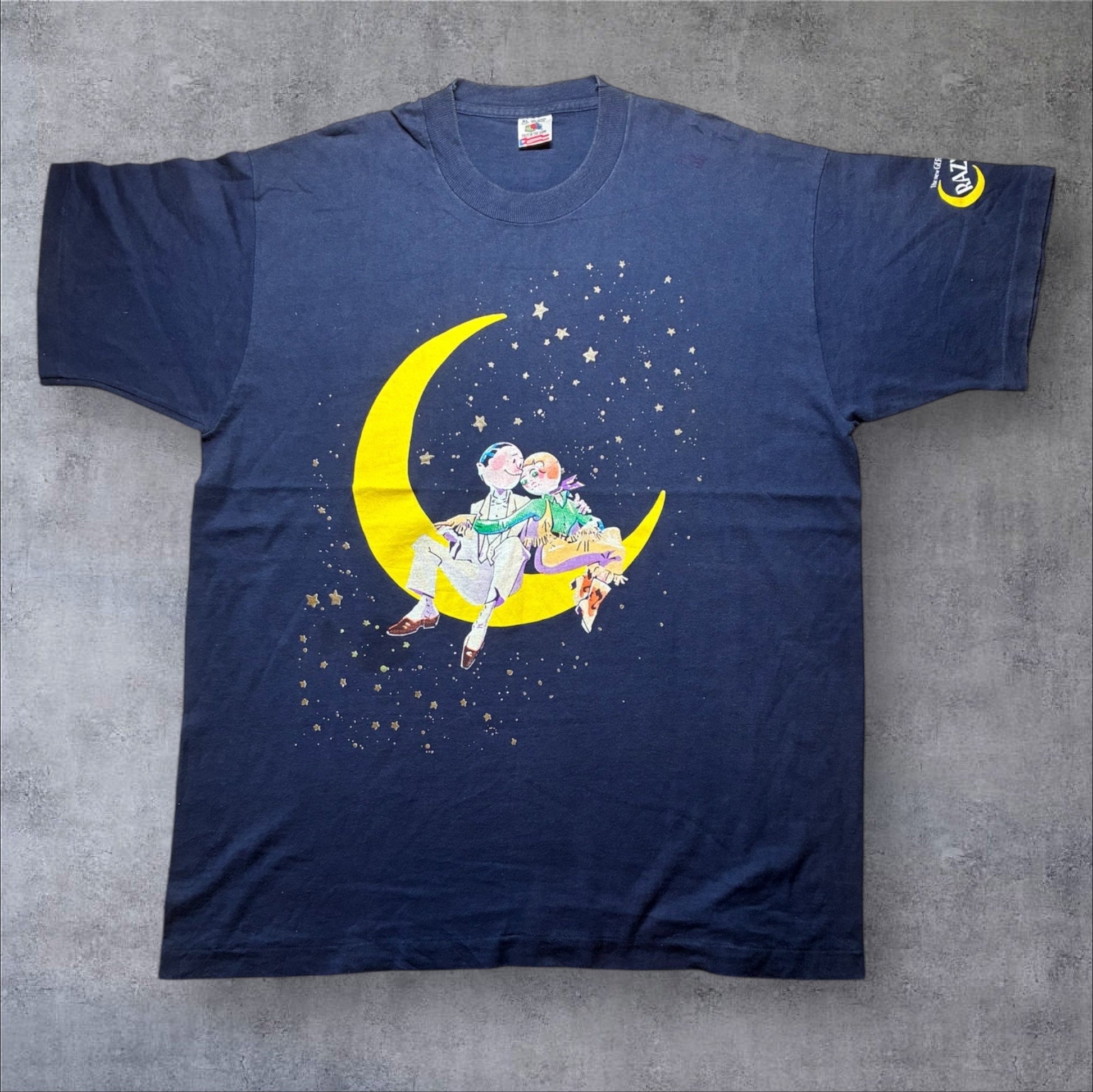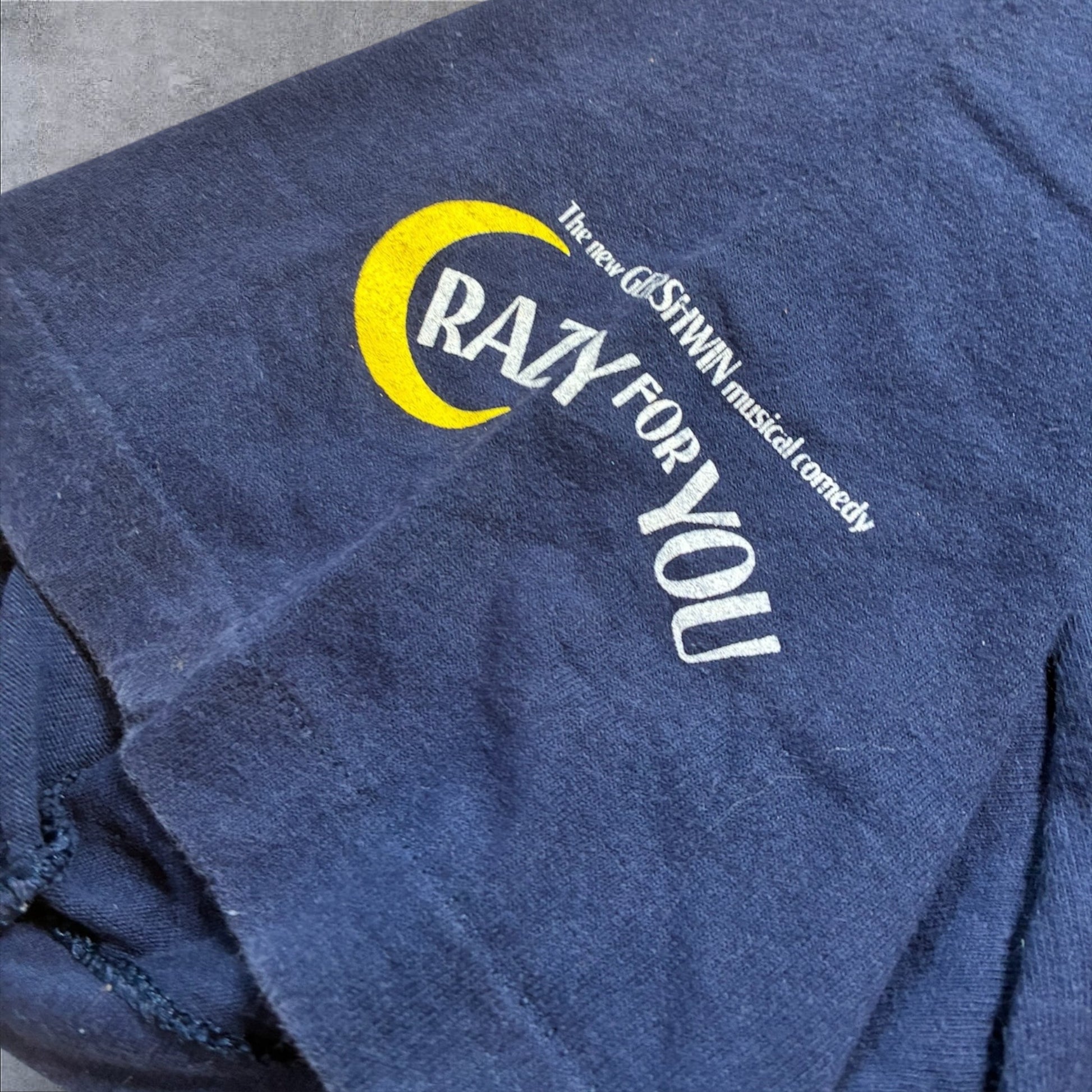 90sb Crazy For You ミュージカルT フルーツオブザルーム USA製 XL ネイビー a-u-2505-041