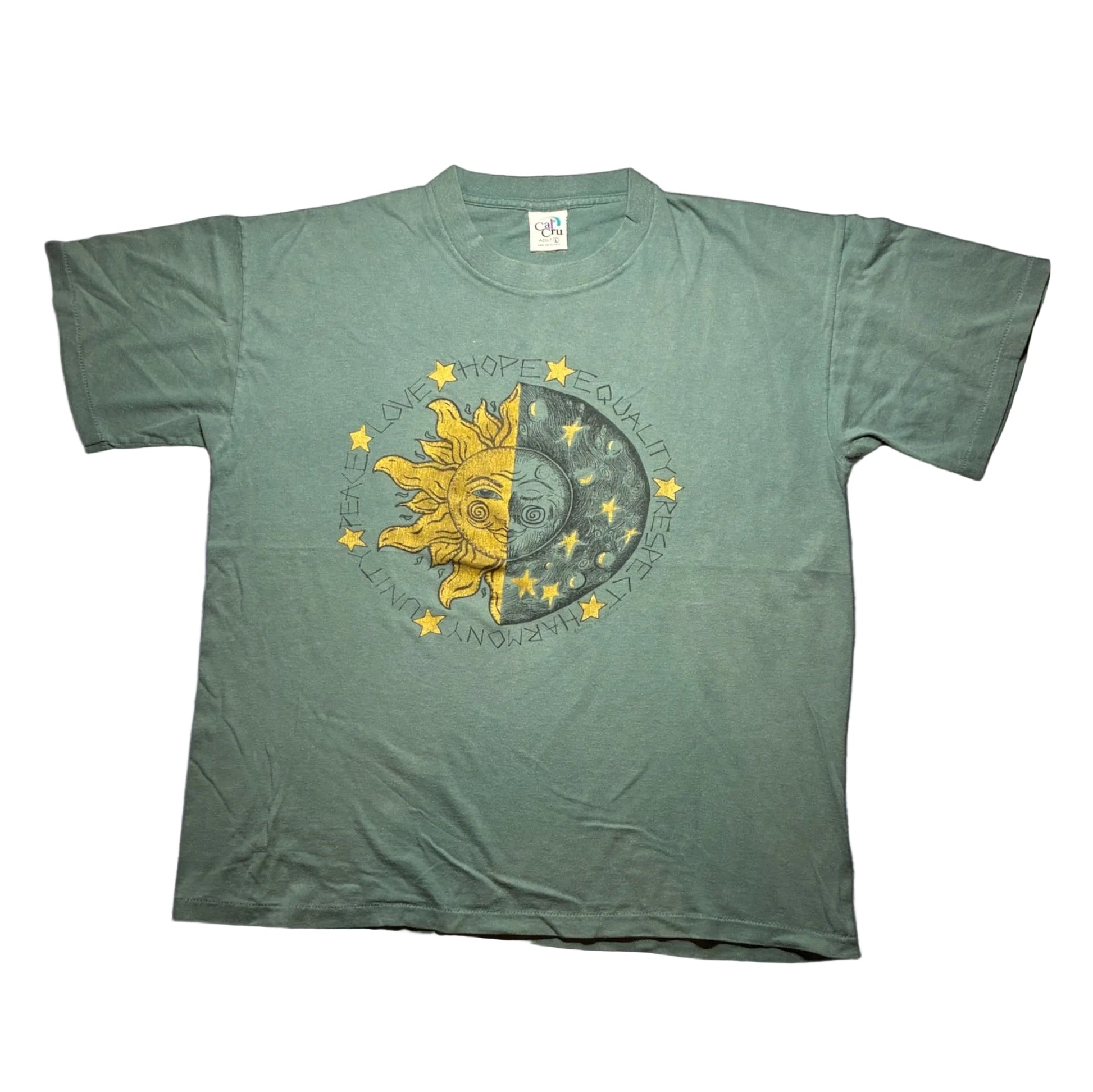 90s 太陽と月 love hope equality calcru USA製 カーキ L a-u-2505-052