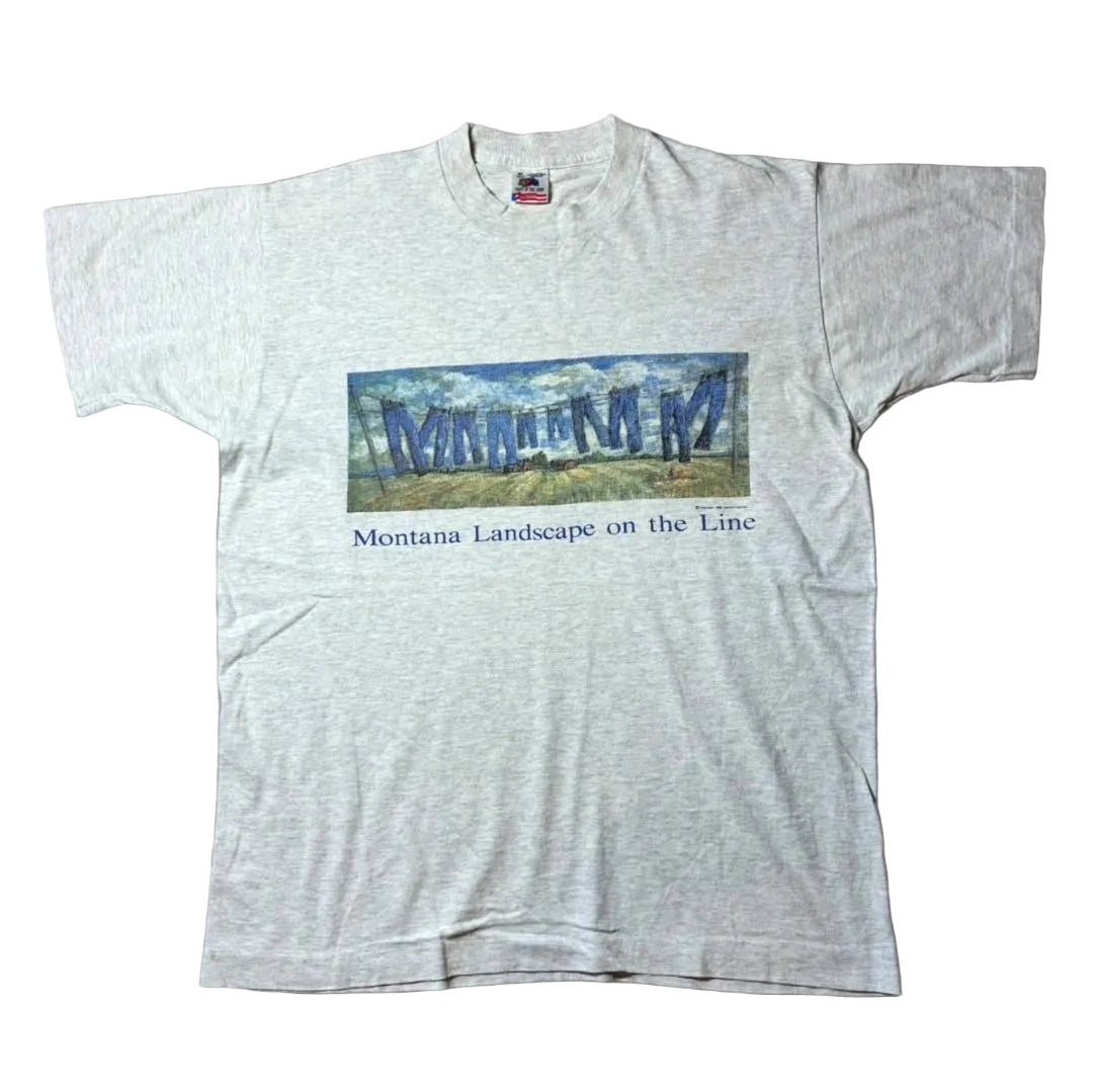80s 90s デニム ジーンズ アートT フルーツオブザルーム USA製 グレー M a-u-2505-088