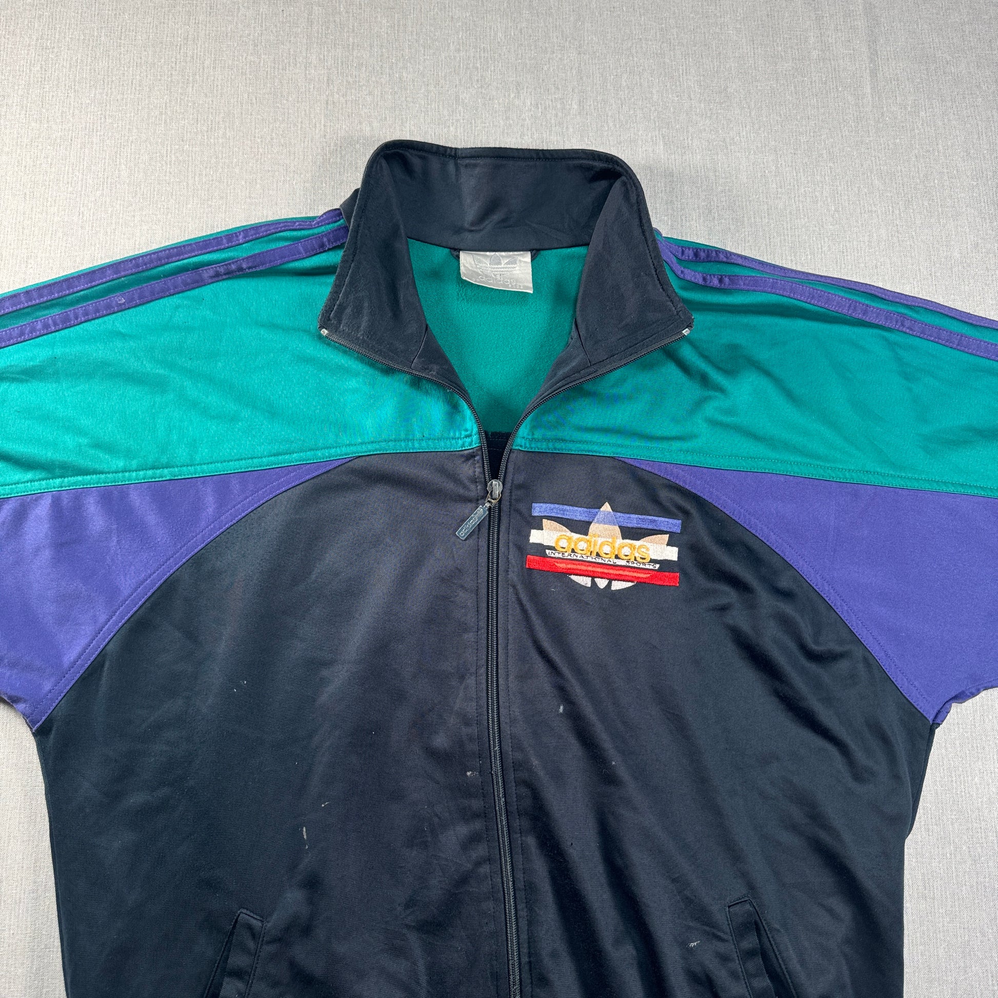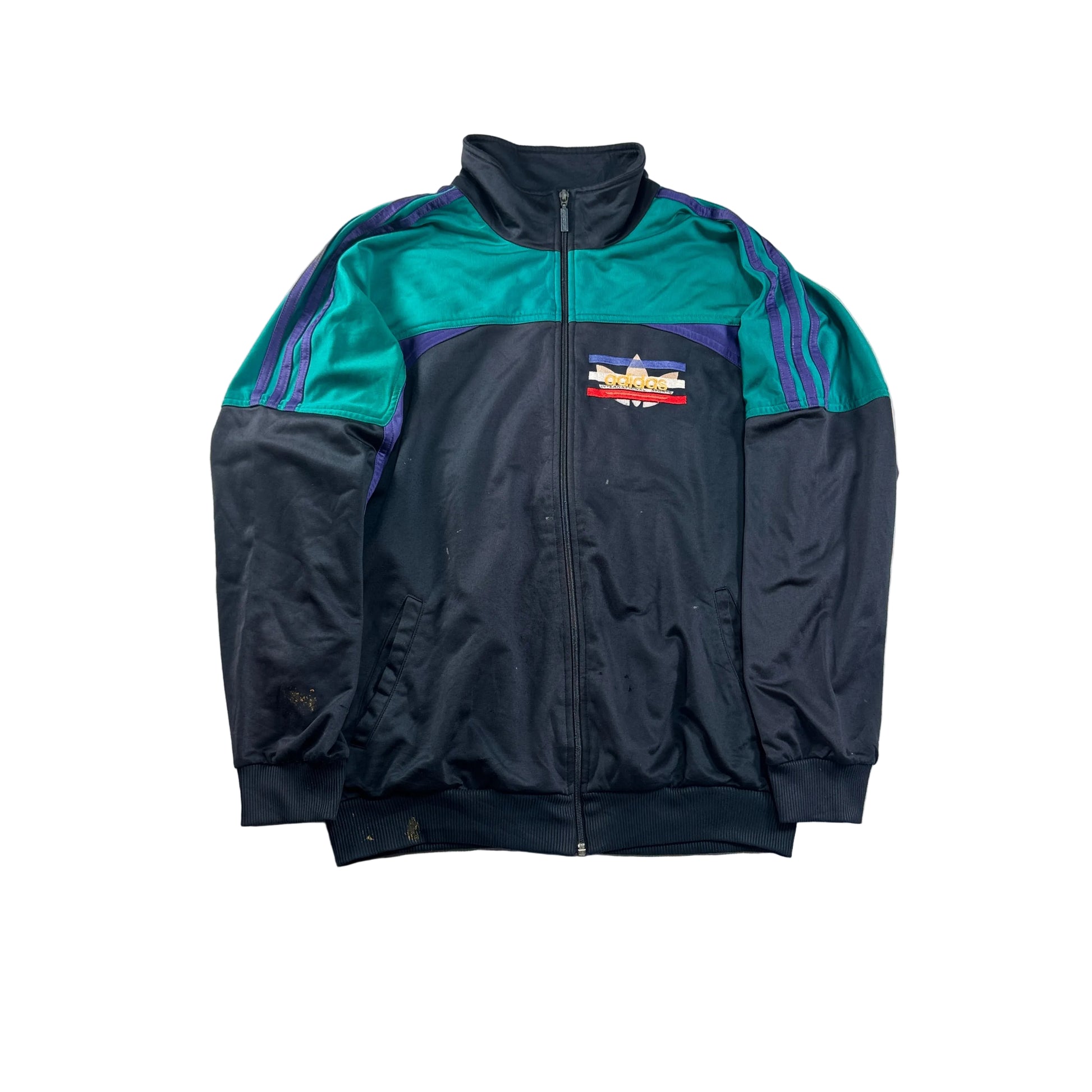 80s adidas トラックジャケット 黒 刺繍 銀タグ ad-u-2505-026