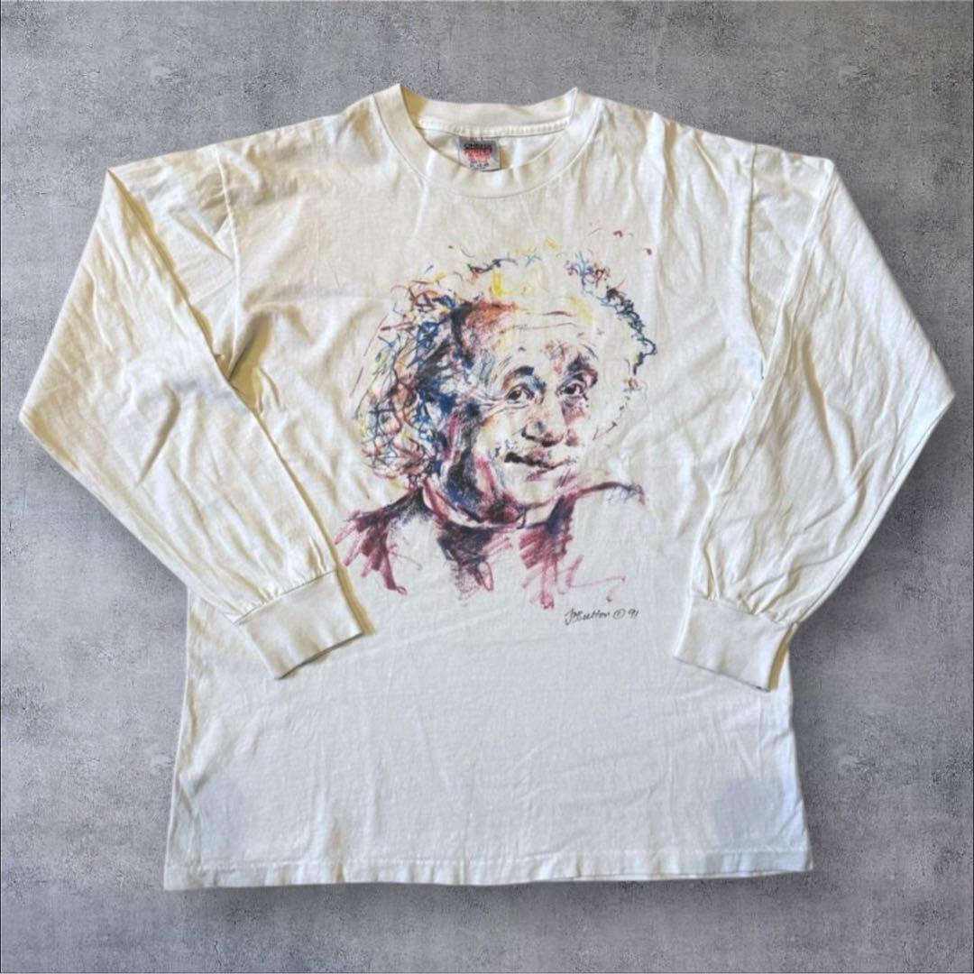 90s アインシュタイン アートT 長袖 偉人 XL z-000024